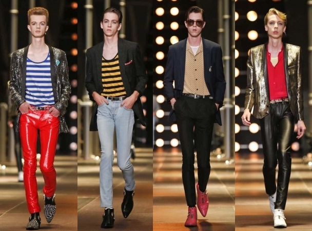 Gemunkelt wurde dann, dass „Saint Laurent“ immer schlechter werde und Herr Slimane schon langsam Angst um seinen Job bekommt. Kein Wunder bei seinen Rockabilly / Elvis Looks. Andere feiern den neuen Mager-50s-Look von Hedi Slimane als das beste Recycling des Jahrzehnts. Na klar! Wenn gerade die unsäglichen Buffalo-Boots der 90er Jahre langsam wieder zurückkommen, warum soll dann nicht auch Elvis mit nem üblen Magen-Darm-Durchfall ordentlich abnehmen und uns ein Revival bescheren. Frau Wintour war auch nur ein gefälliges „very nice“ zu entlocken, als sie die Show in einem geometrisch-schicken Marni Dress mit „eingearbeiteter optischer Täuschung“ verließ. Auf jeden Fall waren die Models aussergewöhnlich unansehnlich und einige weibliche Models dürften arg Eifersüchtig auf die ausgemergelten Klapperknochen gewesen sein!