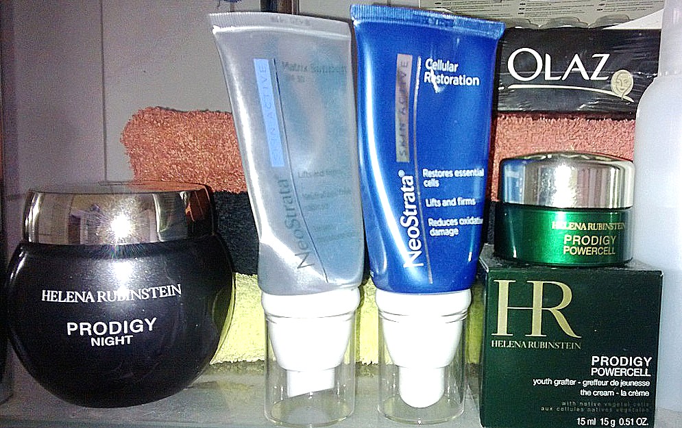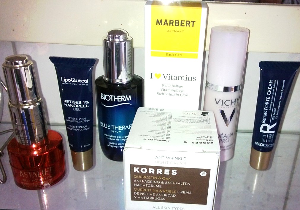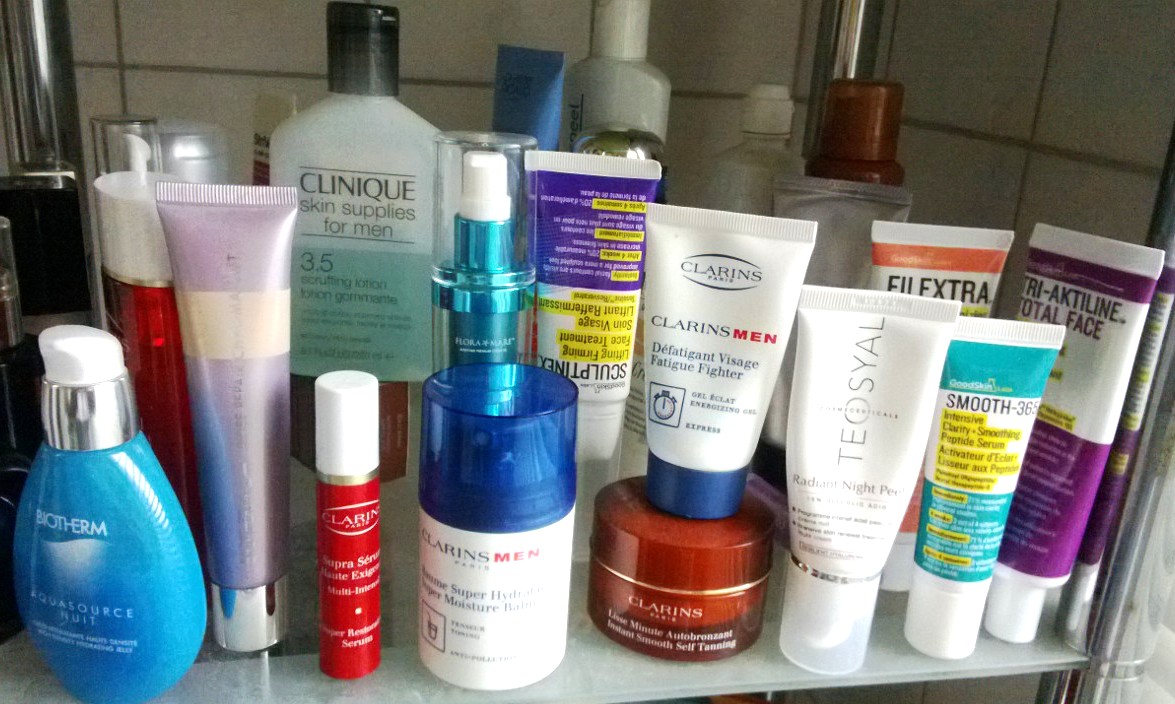 Wenn ich mir meine Badezimmerregale so anschaue, dann steht da schon eine Menge Geld herum. Ich traue mich nicht es mal zusamenzurechnen, wahrscheinlich würde ich vor Schreck ins Koma fallen. Aber was solls, dafür rauche und saufe ich nicht! 😉 Obwohl, es gab und gibt durchaus mal feucht, fröhliche Abende, die nicht gerade schon um 01 Uhr ein Ende fnden. Und ausserdem werden am nächsten Morgen so einige Hautpflegeprodukte auf eine harte Probe gestellt.