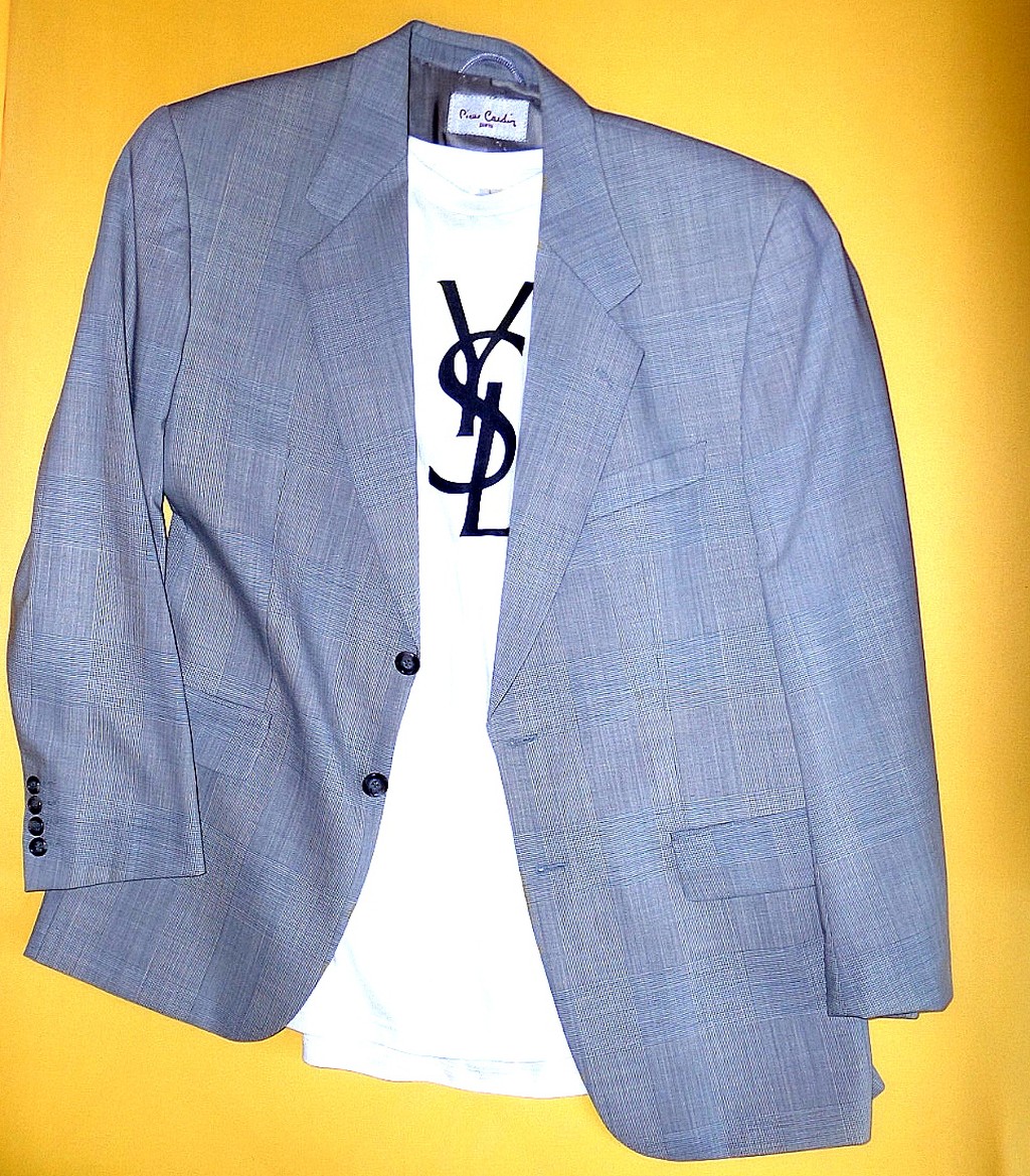 Jacke: Pierre Cardin (Fast 12 Jahre alt! Eine MEGA-Qualität und so schön eng, dass man es heute klasse wieder tragen kann) ca. €450,00, Statement-Shirt: Yves Saint Laurent, ca. € 290,00.