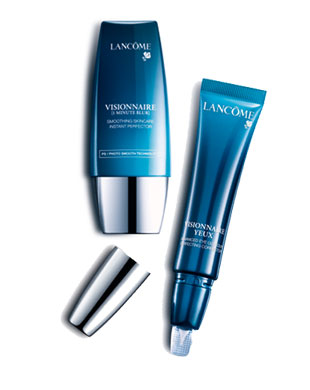 Lancome hat seine Reihe Visionnaire um zwei außergewöhnliche Produkte ergänzt. Die Visionnaire 1 Minute Blur zieht sofort ein, füllt die Energiespeicher und Poren mit Feuchtigkeit auf und verleiht somit ein mattes, glattes Aussehen. Die glättende Gesichtspflege wird morgens aufgetragen und versorgt den ganzen Tag Ihre Haut mit allen notwendigen Mineralien für einen frischen Look. Die Augenpflege glättet augenblicklich und spektakulär die zarte Augenpartie.