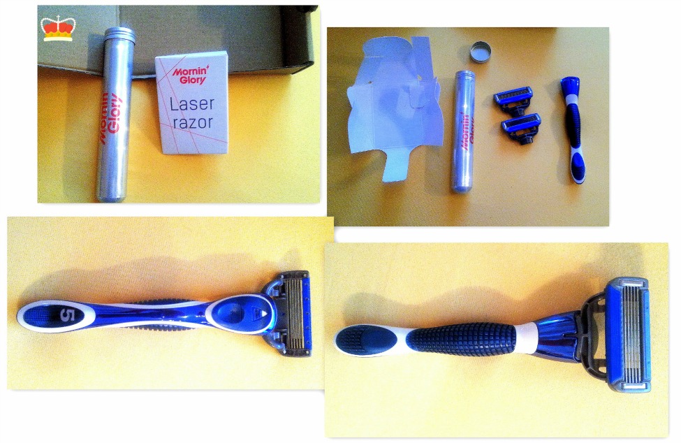 Diesen Text habe ich im Internet auf der Seite der Firma „Morninglory“ gefunden und war begeistert! 50% günstiger als ein teurer Gillette Rasierer? Super, gekauft!