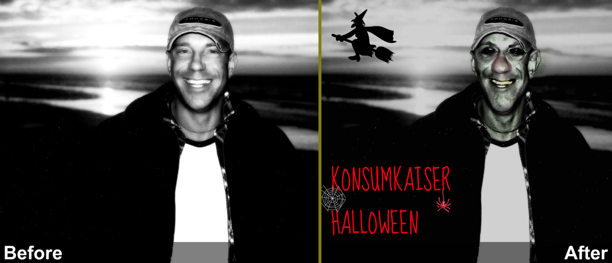 Dabei bin ich auf die Seite RIBBET.COM gestossen. Die Gruselfotos hier im Blog habe ich damit in 5 Minuten zusammengezaubert. Ein klasse Programm! Einfach ein vorhandenes Foto hochladen und dann mit den tausend (aber übersichtlichen) Möglichkeiten bearbeiten. Das geht wirklich kinderleicht und sehr flott! Eine wunderbare Alternative, und auch normale Fotos bekommen hiermit eine Aufhübschung.