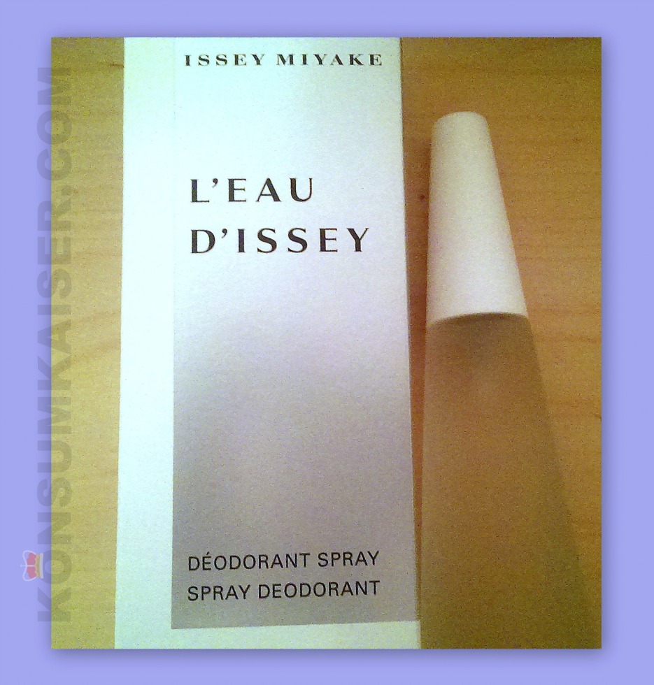 Dabei reicht auch das Deospray völlig aus. Wenn man sich nur dezent „beduftet“ und nicht unangenehm als „Stinkbombe“ auffallen möchte, ist das parfumierte Deo eine gute Wahl. Auch am Abend ist der feine Duft noch wahrnehmbar und die Deoleistung hält zumindest für einen ganzen Tag ordentlich durch. Die edle Glasflasche von Issey Myiake ist im Bad ja auch durchaus eine Augenweide, puristisch-elegant und in meinem sehr geschätzten „clean-chique“. Leider muss man nach dieser Version ein wenig suchen, der Vaporisateur ist nicht mehr so oft zu finden! Ersetzt wurde er durch eine seelenlose Plasikspraydose.