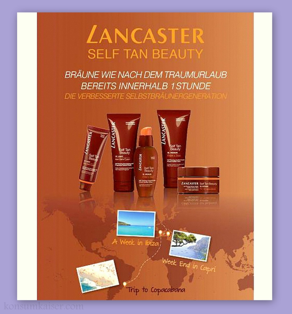 Verschweigen will ich folgendes auch nicht: Lancaster nutzt sehr oft Alkohol in den Produkten. Deshalb Obacht! Ich habe die Inci noch nicht einsehen können, aber ich warne schon einmal vorsorglich. Alkohol in SonnenSCHUTZ und After-Sun Produkten halte ich für total daneben. In einem Selbstbräuner, den man ja nicht ständig verwendet, eventuell vertretbar. Das muss man einmal austesten. Jedenfalls war ich vom Ergebnis der Lancaster Selbstbräuner immer sehr angetan!