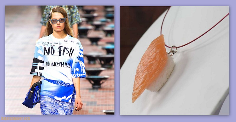 Oder ein Kenzo „Iconic Fish“ Piece mit der Sushi-Kette. (Kenzo kommt in diesem Jahr wieder groß raus, man glaubt es kaum. Mit der „No Fish“ Kampagne will Kenzo auf die Überfischung unserer Weltmeere aufmerksam machen).