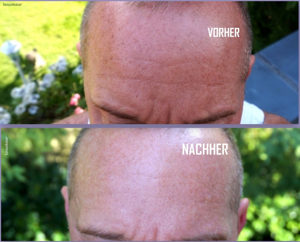 Braune Flecken sind zum Glück nicht mein Thema, aber – der Unterschied bei den Stirnfalten!!! Ich bin dann mal weg, muss SOFORT das RHA – Serum bestellen! 😉