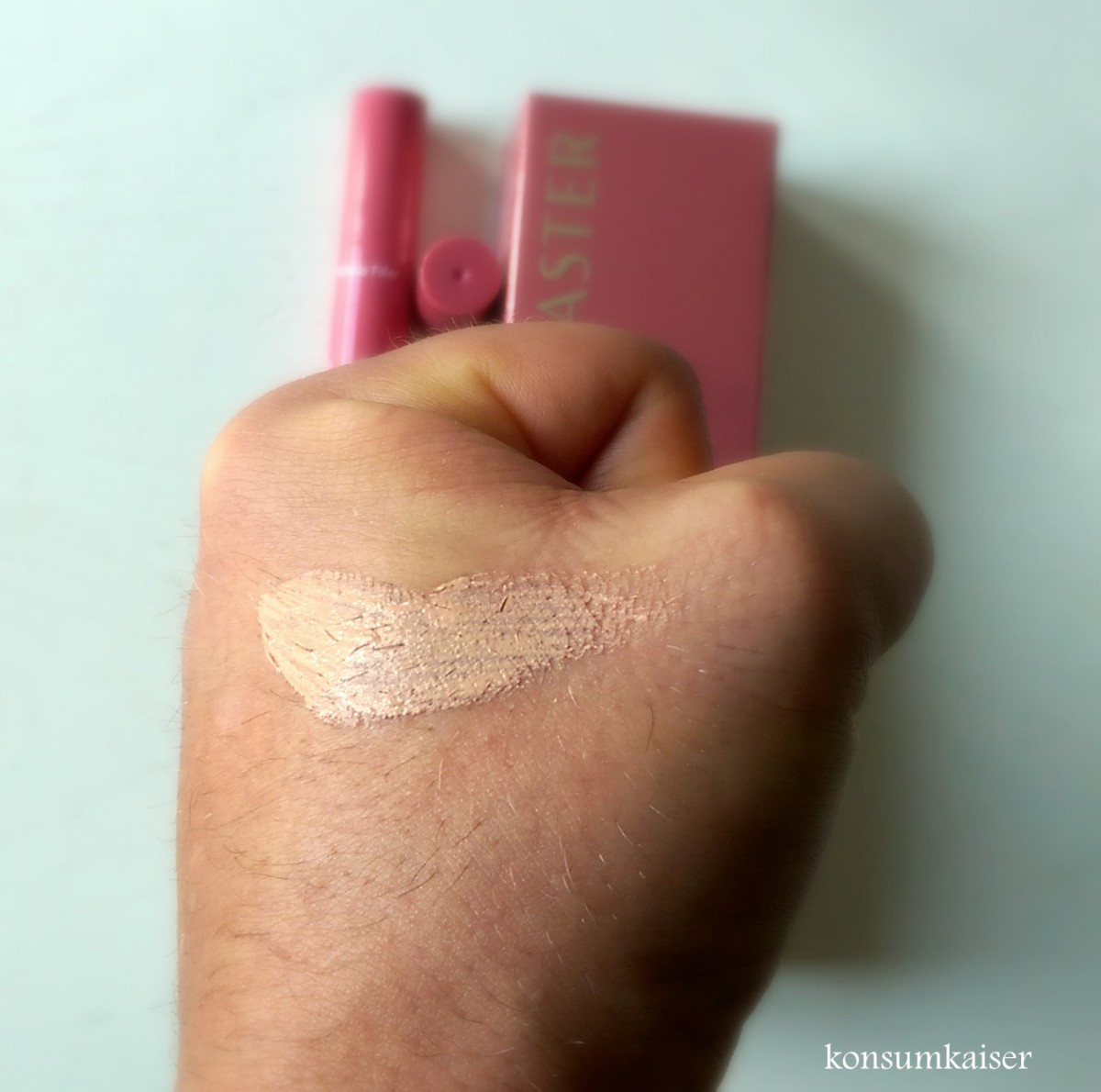 Hier haben wir endlich einmal ein Beispiel für ein Produkt, welches voll und ganz seiner Produktbeschreibung gerecht wird. Mit den oben genannten Informationen bin ich total einverstanden, denn genau das tut der Stift: Er füllt kleine Falten auf, auch an den Augen und auf der Stirn. Danach hellt er Zonen des Gesichts optisch auf und kaschiert wirklich gut Augenringe und lässt tiefere Falten weniger tief wirken. Die Farbe ist sehr anpassungsfähig, dünn aufgetragen und gut verblended müsste sie bei JEDER Hautfarbe funktionieren, nur bei sehr dunklen Hauttypen könnte es um die Augen herum maskenhaft aussehen.