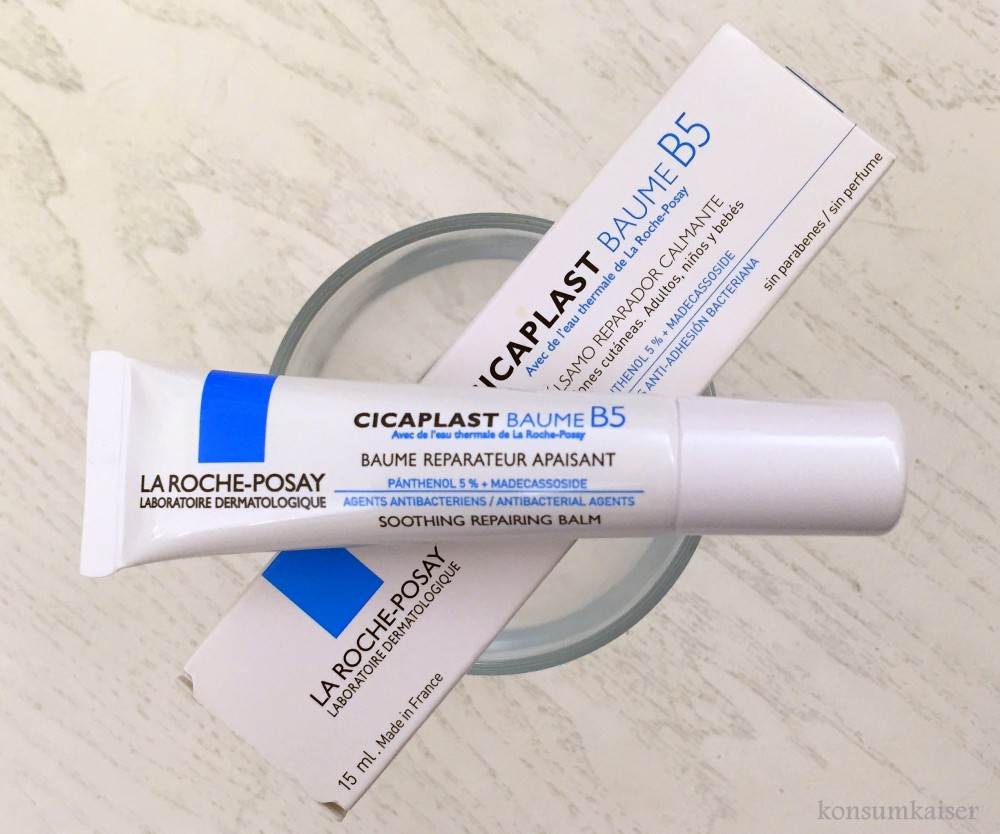 Was habe ich dagegen getan? Nun, erstmal die Dosis reduziert! Ich habe mir noch zusätzlich die 0,025 Version bestellt und diese dann nur noch jeden 2. bis 3. Abend aufgetragen. Das hat den Schäleffekt schon mal deutlich verringert. Dann wurden die „wunden“ Stellen mit „Cicaplast“ versorgt, eine Art Wund- und Heilcreme von La Roche-Posay, der ich hiermit eine super Wirkung bei solchen Sachen bestätige.