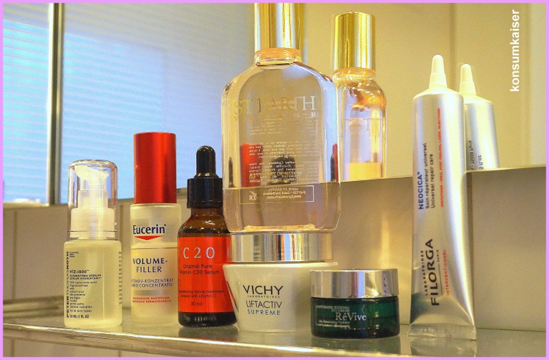 Das ist wieder eine interessante Auswahl. Freut mich, dass du bei C20 auch direkt eine Wirkung siehst, wobei ich den Effekt jetzt nach mehreren Monaten nicht mehr so deutlich sehe – meine Haut ist eben inzwischen besser geworden. Eucerin klingt auf jeden Fall auch nicht schlecht, wobei ich ja gerne etwas hätte, was wirklich etwas aufpolstert, also nicht nur für ein paar Stunden.
