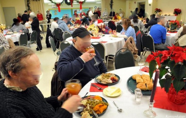 Wer jetzt denkt, es sei ein zutiefst befriedigendes und erhebendes Gefühl den Ärmsten der Armen zu Weihnachten unter die Arme zu greifen, der sollte seine romantischen Vorstellungen kurz einmal gerade rücken. Betrunkene, Schlägereien, Pöbeleien, Messerstechereien, usw. All das ist menschlich und es kommt vor, auch zu Weihnachten! Abends im trauten Heim fühlt man sich wie nach einem Kampfeinsatz. Immer wieder werden auch Helferinnen und Helfer angegriffen, niedergestochen oder gerne mal verbal beleidigt. Und trotzdem komme ich in jedem Jahr wieder, und helfe wo ich kann, denn es gibt ihn noch, den kleinen, schwach glimmenden Funken Menschlichkeit, auch in einem Millieu welches manchmal für Aussenstehende „unmenschlich“ erscheint. Dankbare Blicke sind unser Lohn am Ende des Tages. Besonders wenn die Menschen satt geworden sind. Dann sinkt das Aggressionspotential dramatisch und eben noch aufrührerische Junkies sind ganz ruhig und schauen versonnen in den Kerzenschein, der auf jedem Tisch leuchtet.
