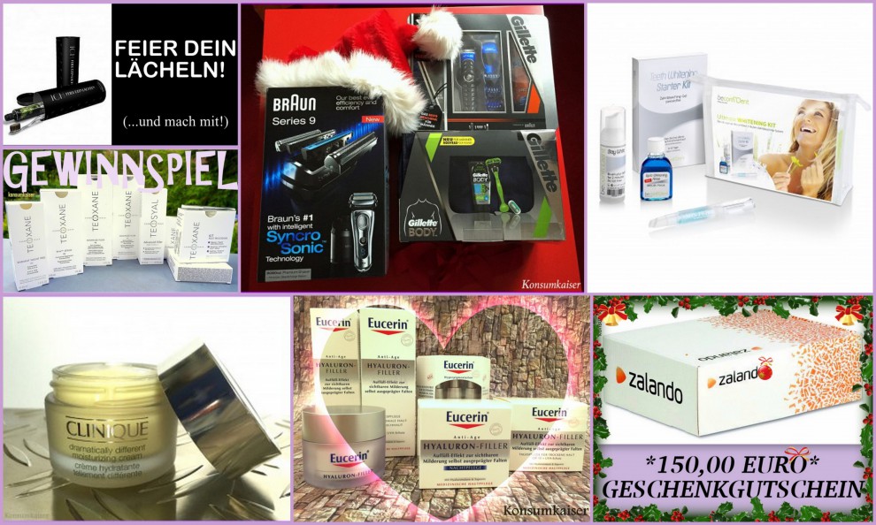 (Collage: Konsumkaiser Fotos: Konsumkaiser, Paulas Choice, P&G, Smilestore, Zalando. Die Produkte für die Verlosungen wurden teilweise unverbindlich gesponsert von: BeconfiDent, Teoxane, P&G, Smilestore und Eucerin. Vielen Dank! Die übrigen Gewinne wurden von mir selbst bezahlt und den Gewinnern zur Verfügung gestellt! Das neue Gewinnspiel wird nur von Konsumkaiser veranstaltet, kein Sponsoring!)