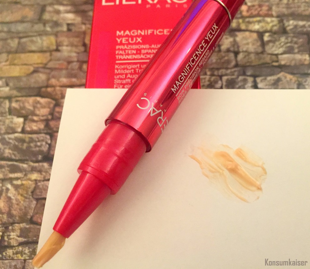 Ich mag die „Magnificence Yeux“ von Lierac sehr gerne und verwende sie gezielt an Tagen, an denen meine Augenpartie ein wenig „Tuning“ braucht. Das klappt auch ganz prima, da kann man wirklich nicht meckern! Auf lange Sicht, finde ich die Creme allerdings nicht reichhaltig genug, da könnten auch mehr moderne Anti-Aging Stoffe drin sein (siehe Neostrata „Bionic Eye Cream Plus„), und vielleicht auch ein UV Schutz. Für die Nacht kommt sie für mich nicht in Frage, da verwende ich lieber eine deutlich reichhaltigere Pflege. Als „Effektprodukt“, welches meine Augenpartie tatsächlich „wacher“ erscheinen lässt (ohne dabei zu glitzern, wie gerade aus dem Diamantenbruch geklettert), werde ich mir den Stift sicherlich nachkaufen.