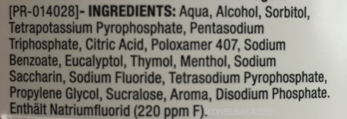 Schlimm ist dann nur noch der enorm hohe Alkoholanteil in den verschiedensten Lösungen. Gerade da ist Listerine ja besonders weit vorn! (Es gibt aber auch eine Variante ohne Alk, die macht aber keine weißeren Zähne) Gleich nach dem Wasser ist hier die 2. Zutat Alkohol. Dieser hat Einfluss auf unsere Mundflora, also die dort lebenden Mikroorganismen, welche für einen gesunde Mundschleimhaut sorgen.