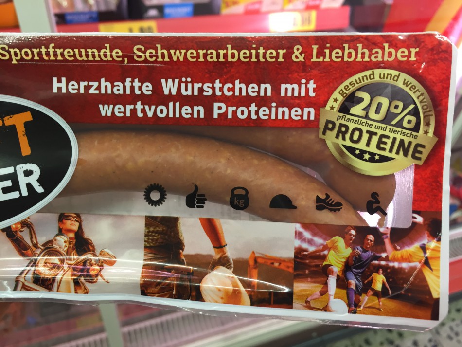 WTF? Liebhaber?? Da stellen sich mir ja gleich mehrere Fragen, die ich hier besser nicht öffentlich in die Tastatur hacke… Wer denkt sich denn bitteschön SOWAS aus? Und haben wir denn schon Karneval? DA läuft das Würstel bestimmt wie bekloppt. Ach Moment, die Trachtenträger/innen versammeln sich ja gerade wieder in diesem München auf der Theresienwiese, um sich (und sich gegenseitig) das Gehirn aus dem Schädel zu…äh, was auch immer… inkl. kraftspendender Wurst. Proteine, Proteine, wohin man auch schaut, Proteine!