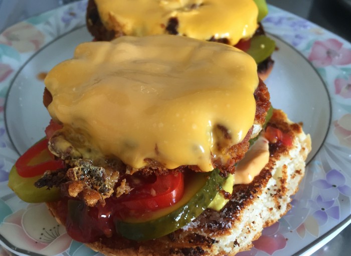 Ich mag Fleisch! Sorry, ich weiß, heutzutage ist es fast schon verpönt öffentlich zuzugeben Fleisch zu essen. Aber da ich mich eh nicht um solche Dinge schere, habe ich auch kein Problem damit offen zuzugeben, dass ich für ein schönes Stück dampfendes Rindfleisch auf dem Teller meilenweit stiefeln würde. Trotzdem soll man ja immer offen für Neues bleiben. Und so habe ich ihn ausprobiert, den fleischlosen Hamburger. Natürlich selbst zusammengebastelt!