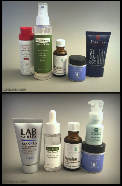 5. Erborian CC Homme: Das nächste Pflegeprodukt ist ein Tipp von einem befreundeten deutschen Kosmetikunternehmer, auf dessen Meinung ich großen Wert lege. Er brachte sich diese CC Creme von einer Reise mit und war gleich begeistert, weil sich die Deckkraft und der leicht mattierende Effekt für ein echtes Männerprodukt wirklich gut machten, ohne dabei geschminkt auszusehen! Und das ist es, was mich bei den Koreanischen BB und CC Cremes (auch die für Männer) absolut gestört hat: Man sieht nach der Anwendung aus, als wolle man zu Halloween als wandelnde Klagemauer gehen (noch nen gefalteten Zettel zwischen die Zähne, fertig)! Mir schaut dann immer eine kalkig-bröckelnde Wand aus dem Speigel entgegen, und ich wasche den Mist entnervt ab. OK, hier ist das NICHT der Fall! Die Haut sieht aus wie deine Haut, nur besser, ganz einfach. (Allerdings: Sparsam gebrauchen! Die Farbpigmente können sich zb. am weißen Hemdkragen unschön bemerkbar machen!). Die Creme ist weiß und scheinbar nicht getönt, erst auf der Haut platzen die Microkügelchen und geben die sich anpassenden Farbpigmente frei. Ab sofort auch mein Geheimtipp, wenn man mal etwas durchgeorgelt aussieht! 30ml ca. 29,00 Euro (zb. über Sweetcare.pt – in Deutschland leider noch nicht erhältlich)