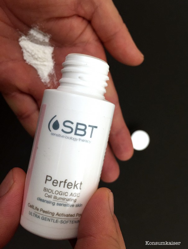 Da es hier zu keiner wirklich mechanischen Belastung der Haut kommt, ist der Peelingprozess somit weitestgehend sanft und unbelastend für die Haut. Trotzdem muss man sich an die Behandlungsdauer ein wenig herantasten. Die angerührte Paste (mit ca. 5 ml Wasser) kann ca. 5 bis 15 Minuten auf der (angefeuchteten) Haut bleiben. Dann wird sie mit viel Wasser abgewaschen, danach ist der Peelingprozess beendet.