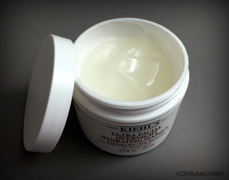 Im Moment brauche ich keine großartigen Reisen mehr antreten, und somit steigt auch wieder die Lust aufs „Layering“, also das hemmungslose Auftragen sämtlicher Seren und Cremes, die mir zur Verfügung stehen. Ok, so schlimm ists dann doch nicht, aber zusätzlich zu meinen „All Time Favourites“, dem HighDroxy Serum und dem Hydro Spray kommt mir abends noch ein weiteres Produkt ins Gesicht: Nämlich nichts anderes als Kiehls „Ultra Facial Overnight Hydration Masque„. Die funktioniert gerade so gut bei meiner Haut, dass ich morgens regelrecht begeistert bin, wenn ich ins Bad komme und vorsichtig den ersten Blick in den Spiegel werfe. Aber keine krachenden Spiegel, keine Risse, keine Splitter, kein hämisches Gelächter. Alles prima und so wie es sein soll: Unauffällig und prall.