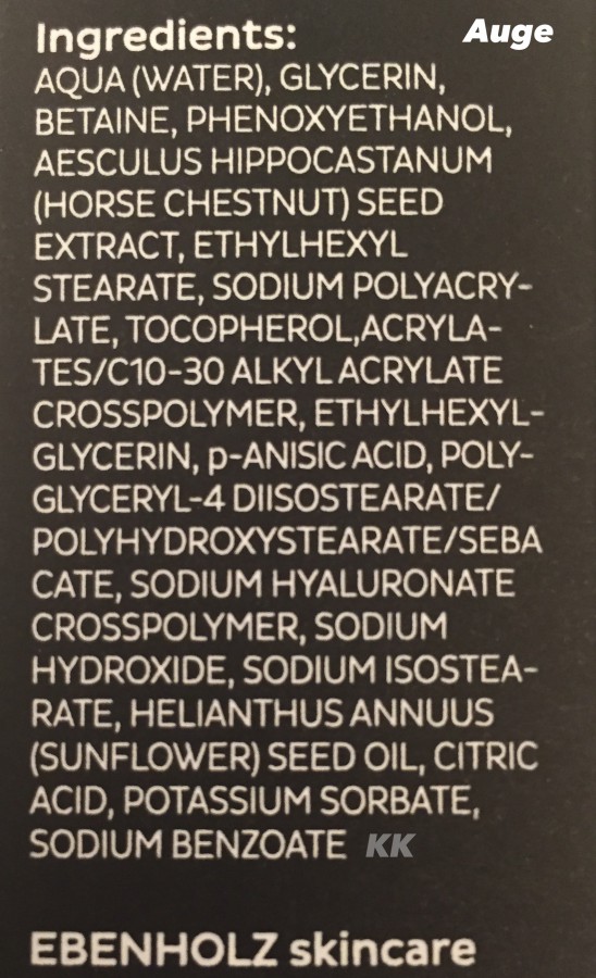 - Straffendes Augenserum (Mein Retter bei geschwollenen Augen! Neben dem dicken Roller von Teoxane, den es ja NICHT mehr gibt, mein SOS Produkt No. ONE! Ich bewahre das Gel im Kühlschrank auf, und wann immer mir fiese Schwellungen einen Strich durch die „Gut-Aussehen-Rechnung“ machen wollen, hilft dieses Gel bei mir wahre Wunder. Nach wenigen Minuten (Ok, es dauert ca. 20 Minuten bei mir), kann ich zuschauen, wie die Zone unter den Augen abschwillt, straffer wird und der gesamte Augenbereich wieder ausgeruht und frisch wirkt. Zum Glück hält das einen ganzen (Ausgeh-) Abend an!