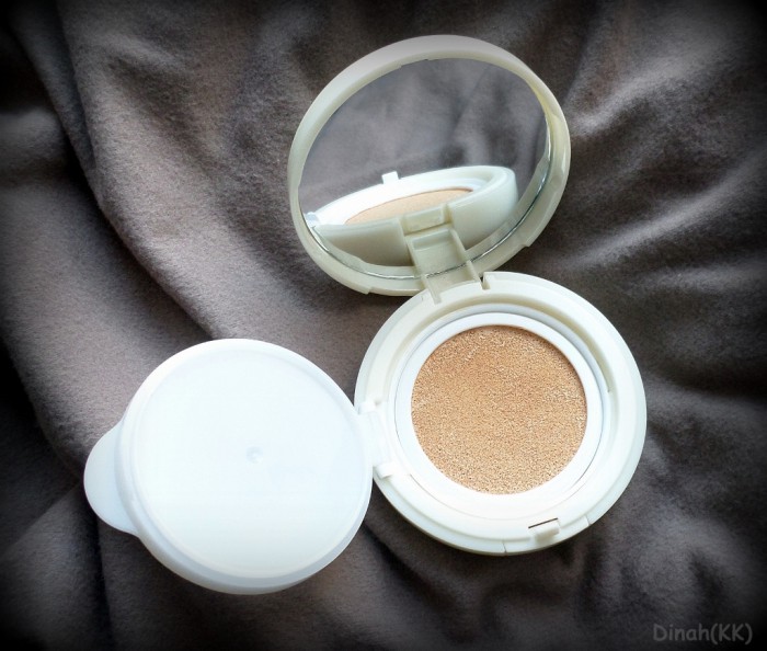 Nachdem ich mir eine Zeitlang die Vorher-Nachher-Fotos in diversen Blogs angesehen hatte, gab ich der Versuchung nach und bestellte ein sehr populäres Drogerieprodukt, nämlich die Precious Mineral Any Cushion von Etude House in der Version „moist“ für trockene Haut und der hellsten Nuance „light beige“. Das Herstellerversprechen: „moisturizing + whitening + anti wrinkle + tone correcting + glossy effect“.