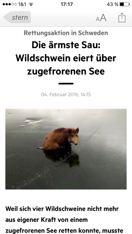 Awwwww….ein niedliches Wildschwein aus Seenot, äh nee, Eis-Not gerettet! Findet ihr nicht auch, dass das Schweinchen eigentlich eher wie „ALF“ aussieht?