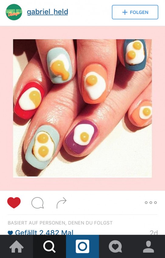 Make-up und Co. kommen bei KK ja recht kurz, aber diesmal habe ich ein Top-Nageldesign für euch gefunden. Ich übe noch übers Wochenende und biete euch dann dazu ein DIY Video. (Gedacht! das wird höchstens ne Kochanleitung für Spiegeleier in der Pfanne!) Aber mal so nebenbei: Wer trägt sowas? Und zu welcher Gelegenheit?