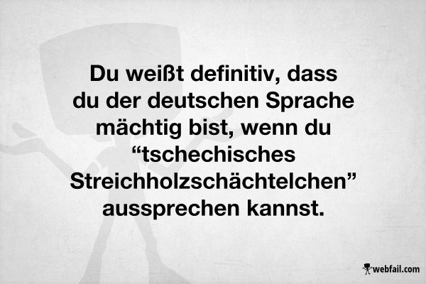 Für viele Menschen scheint Englisch ja schon ein Buch mit sieben Siegeln zu sein, aber Deutsch? Das ist krass schwierig zu lernen. Wir deutschen Muttersprachler machen uns natürlich kaum Gedanken über unsere Sprache. Doch Ausländer, die unsere Sprache lernen, haben oftmals eine Panikattacke nach der nächsten, weil wir dann doch unglaublich viele zusammengesetzte Worte mit fies vielen Konsonanten haben. Da bekommt man schon mal einen Knoten in der Zunge, wie das folgende Video beweist! Very sweet…. 😉