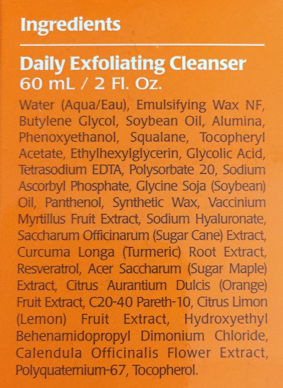 Der Daily Moisturizer enthält fünf chemische Sonnenschutzfilter (bis auf Homosalate eigentlich ganz gut, Tinosorb (Octinoxat) find ich prima!), ein paar Vitamine, Feuchthaltemittel und ein bisschen was „Beruhigendes“. Eigentlich aber doch sehr enttäuschend für eine Anti-Aging Tagespflege. Zumindest ist hier keinerlei Zitrusextrakt verwendet worden, was in einer Tagescreme nicht erwünscht sein sollte.