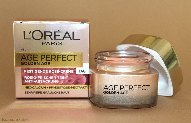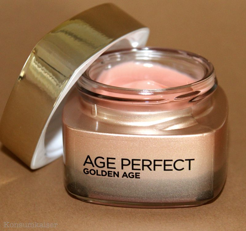 „Die festigende L’ORÉAL PARIS Age Perfect Golden Age Tagespflege versorgt die Haut mit Feuchtigkeit und stärkt mit Neo-Calcium die Struktur der Epidermis. Die Haut wirkt sichtbar rosiger und frischer. Tag für Tag wird die Haut gefestigt und die rosige Farbe jugendlicher Haut kommt zurück.“