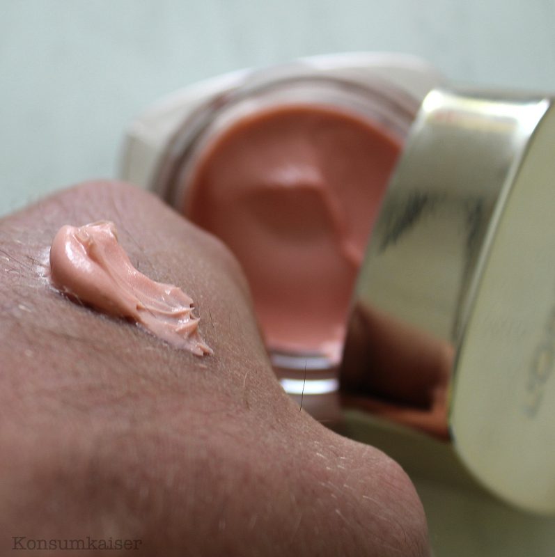 Ich muss tatsächlich zugeben, dass L´Oreal hier ein interessantes Produkt auf den Markt gebracht hat, welches zu einem akzeptablen Preis zu bekommen ist, und dabei in der Lage ist, die Haut tatsächlich für einen Zeitraum zu verschönern. Als langfristige Pflege fehlen mir viele Anti-Aging Stoffe und ein Sonnenschutz. Der Duft ist stark und gewöhnungsbedürftig, aber der gute Weichzeichner- und Glow-Effekt wiegen das für mich wieder einigermaßen auf. Ich würde sagen, wer trockene, (Parfum-)unempfindliche Haut hat und ein solches Effekt Produkt gerade sucht, sollte das unbedingt mal ausprobieren. (Übrigens erinnert mich das stark an „Rose Illusion“ von La Prairie, dieses ist allerdings „geliger“, das L´Oreal Produkt deutlich „cremiger“)