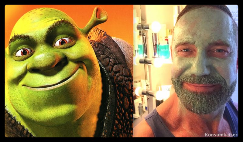 Nein, ich bin nicht grün angelaufen. Und die Ähnlichkeit mit der Cartoon Figur „Shrek“ ist mir fast schon ein wenig peinlich (Na gut, der ist besser rasiert als ich). Aber was schmiert man sich nicht alles ins Gesicht, wenn man im Anschluss gut aussehende Haut haben möchte? So geschehen heute mit dem neuen „Wonder Mud“ von Biotherm. Ob dieser „Wunderschlamm“ tatsächlich innerhalb von drei Minuten meine Poren verfeinert, und die Haut zum Strahlen bringt…?