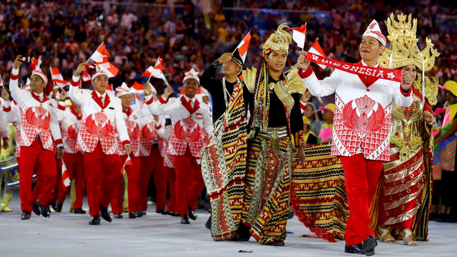 Ganz prima finde ich auch Staaten, die sich in mehr oder minder landestypischer Tracht zeigen, wie hier zum Beispiel Indonesien:
