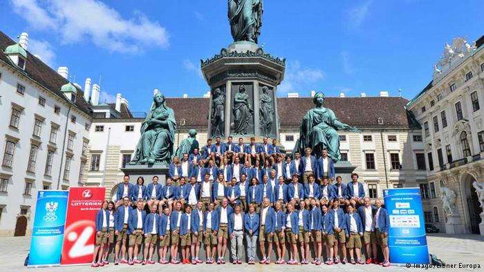 Österreichs Outfit mag ich sehr, obwohl die krachledernen kurzen Hosen schon für Diskussionen sorgten. Trotzdem, sehr gelungen, einfach, effektiv und sportlich elegant. Und die Mädels brauchten auch KEIN Dirndl tragen. Gut so!
