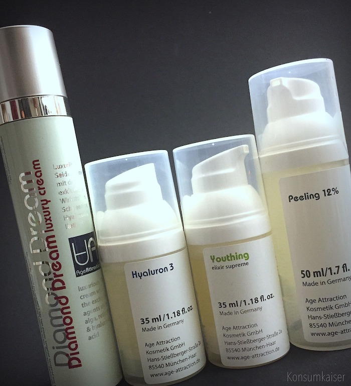 Wer Age Attraction noch nicht kennt (ich kannte sie bis vor ein paar Monaten noch nicht, Asche auf mein Haupt): Die Kosmetikmanufaktur kommt aus München/Bayern und die Produkte werden allesamt auch dort entwickelt und Hergestellt. Dabei hilft die langjährige Erfahrung aus dem eigenen Kosmetikinstitut, denn nur wer die Wünsche der Kunden wirklich kennt, kann auch kundennah reagieren und entsprechende Produkte entwickeln.