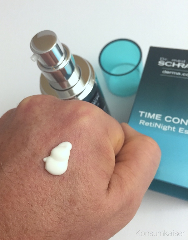 Sehr reichhaltig. Und das finde ich gut. Eine Nachtpflege für trockene Haut. Definitiv. Die Konsistenz ist aber nicht ganz so fest, sondern eher emulsionsartig. Nach der Anwendung soll man eine Nachtcreme darüber geben. Warum? Meiner Meinung nach ist das nur bei extrem trockener Haut notwendig, denn aufgrund ihrer Beschaffenheit (viele pflegende Öle), ist „RetiNight“ eigentlich durchaus eine vollständige Pflege (bei meiner normal trockenen Haut ist sie völlig ausreichend).