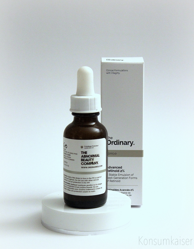 Somit kann man auf die Mengenbezeichnung 2% nicht viel geben, und auch der Hersteller verweist auf sein weiteres Retinolprodukt („Retinol 1%“), welches das altbekannte Retinol in reiner Form enthält. (Erhältlich ab 2017)