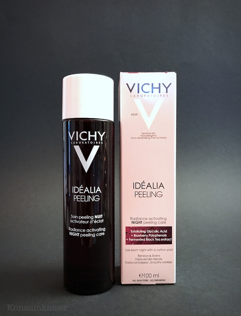 Die Anti-Aging Serie Idéalia von Vichy bietet einige Pflegeprodukte, neu dazugekommen ist nun ein „Night-Peeling“, welches am Abend (vor der Nachtcreme) mit einem Wattepad auf die gereinigte und trockene Haut aufgetragen werden soll.