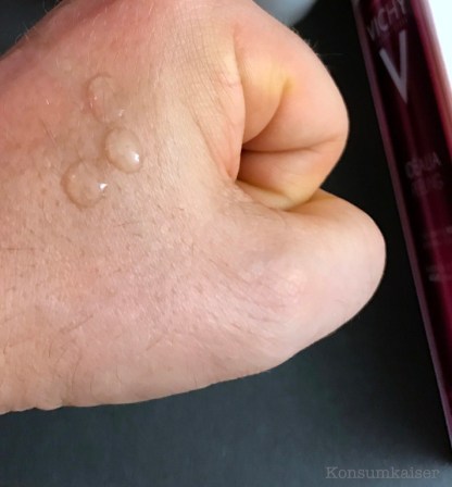 Gleich nach der Anwendung spürt man womöglich ein leichtes „Kribbeln“, und es bleibt ein etwas klebriger Rückstand auf der Haut, der aber verschwindet, wenn man die Haut anschliessend mit einer Hautcreme pflegt.