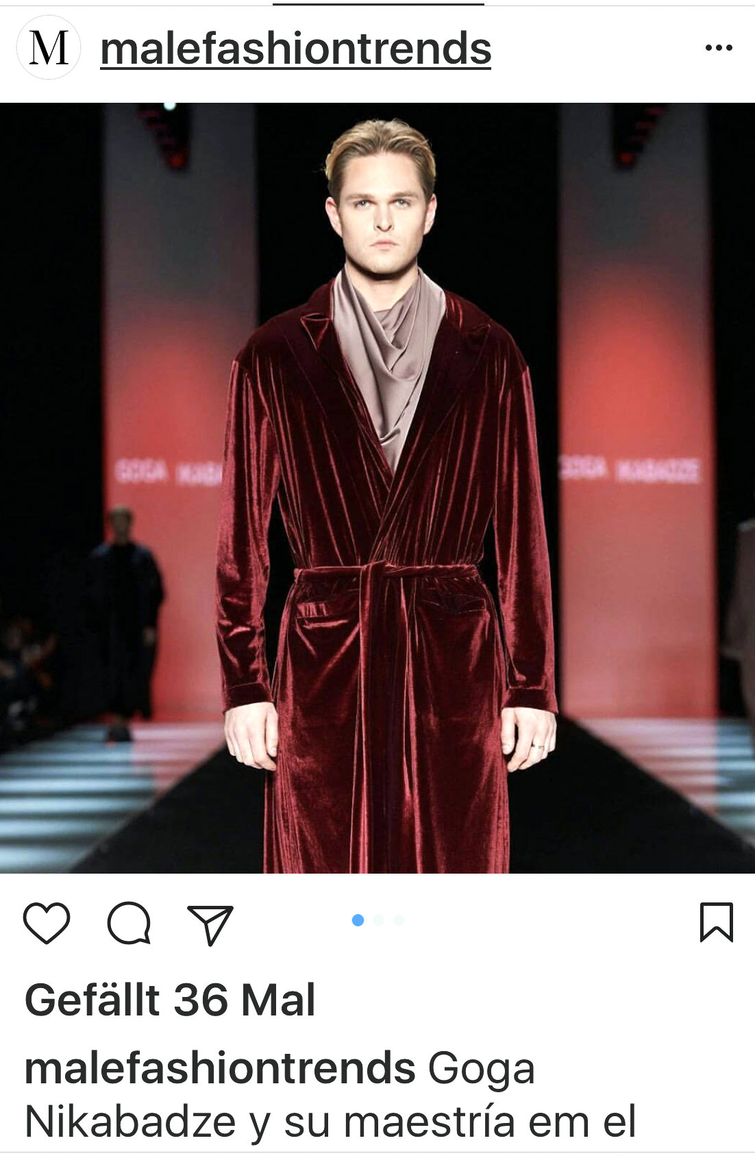 Wer wollte sich nicht schon immer mal fühlen wie Hugh Heffner, der gerade senil durch sein Playboy Mansion wandelt und das Klo nicht mehr findet. Goga Nikabadze macht´s möglich. Interessant wäre es noch zu wissen, ob die Inkontinenzeinlage gleich mitgeliefert wird. Merke: Bademantel ausserhalb eines Krankenhauses wird nicht besser, wenn man Designerkutte draufschreibt!