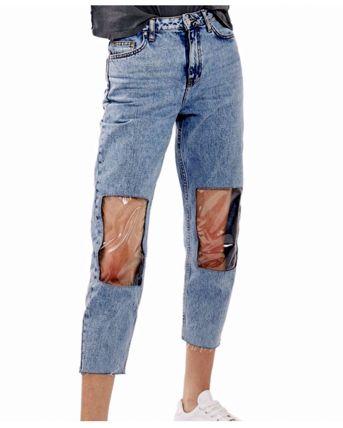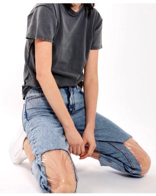 In den USA verkauft Nordstrom gerade die Jeans „Clear Knee Mom“ von Topshop für ca. 95,00 Euro. Die Plastikfenster sind in meinen Augen abgrundtief hässlich und auch den hohen Bund mag ich einfach nicht. Brrr…gruselig!