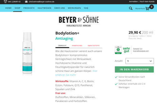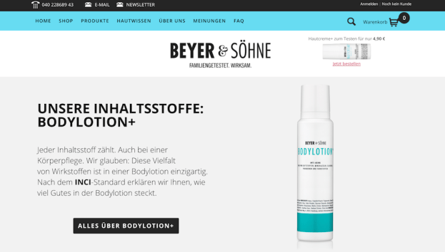 Ich spare mir hier an dieser Stelle einmal die üblichen Erklärungen zu den Inhaltsstoffen und lasse die Beyer-Söhne ein bisschen für mich schuften! Klick unten auf das Bild, und du gelangst zu der 1a Erklärbärseite von B&S. Alle Inhaltsstoffe der Bodylotion+ werden ausführlich erläutert, das versteht selbst Donald Trump! (Einfach auf die einzelnen Wirkstoffe klicken und die Erklärung klappt auf!)