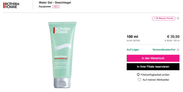 Bei den Produkten für Männer sieht es ähnlich aus. Auch hier macht Biotherm, also L´Oreal, keinen Bogen um reizende Inhaltsstoffe. Ein Produkt mit so viel Menthol und Alkohol würde ich nach der Rasur niemals in mein Gesicht lassen. Aber viele Männer scheinen immer noch zu denken, dass es ordentlich brennen muss nach der Rasur. Da hört man die bösen „Rasurbrandbakterien“ nur so fluchen, oder was? Merke: Wenn „Kühleffekt“ draufsteht, ist meist besonders viel Hautreizendes drin!