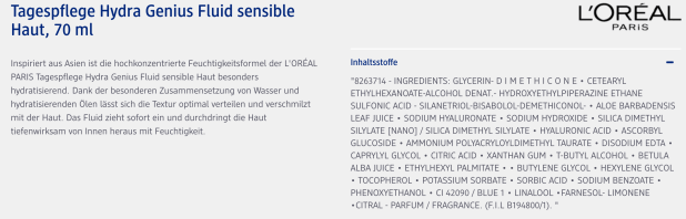 L’Oréal…. dieses Liquid sah ich vor einigen Wochen schon und war genauso entgeistert wie bei Neutrogena und Parfum und andere Reizstoffe im Hydro Boost Produkt für Mischhaut (musste ich aber unbedingt testen aber trotz sehr (!) unempfindlicher Haut Reizungen, flog somit in die Tonne).