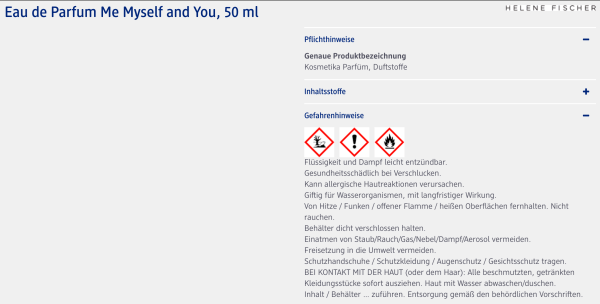 Helene Fischer (bzw. ihre Vermarktungsagentur) hat ein neues Duftwässerchen herausgebracht. Ich wollte nur kurz fragen: Die Warnhinweise beziehen sich auf das Parfüm oder auf Frau Fischer?