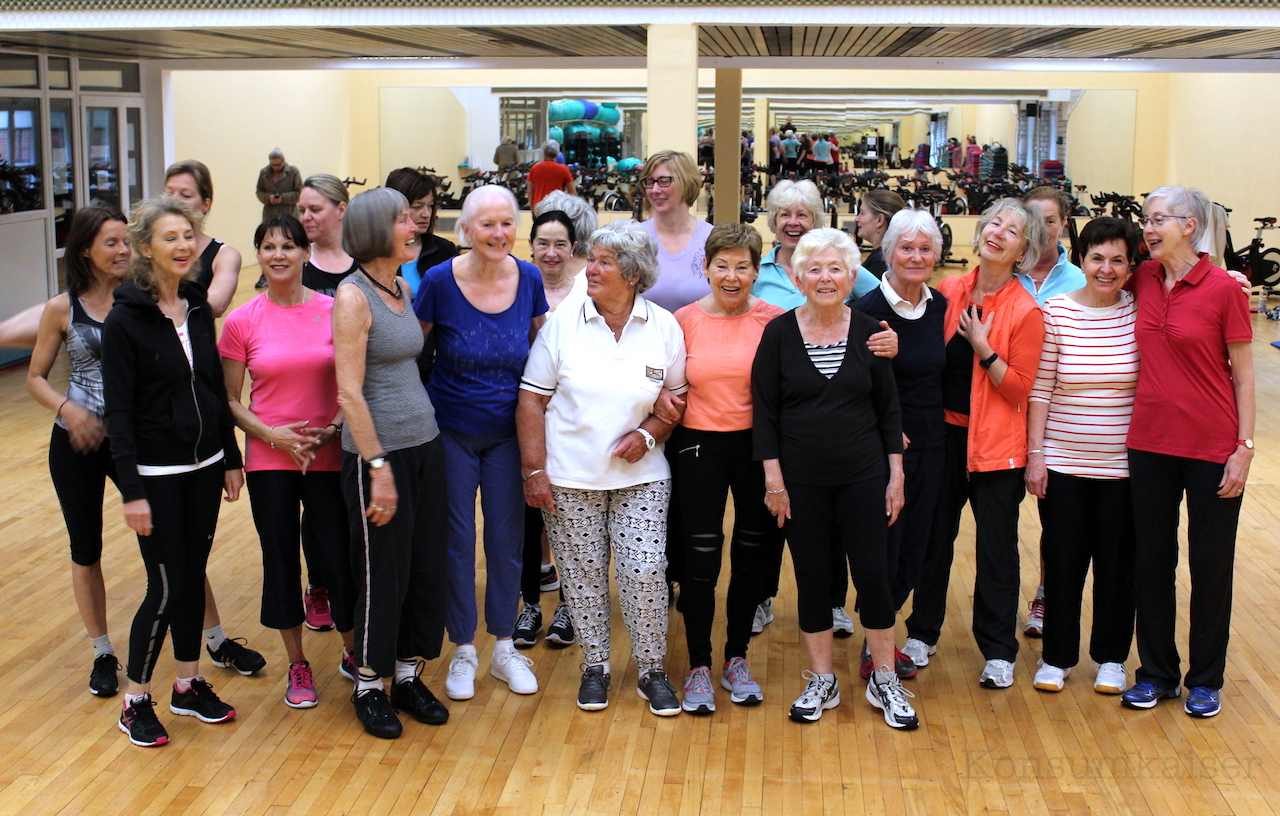In meinem Freitagsangebot sehe ich Teilnehmerinnen und Teilnehmer (ja, auch Männer sind vertreten!), die unterschiedlicher nicht sein könnten. Besonders die Altersstruktur fällt positiv auf: Von der 18-Jährigen bis zur Generation Ü80 ist alles vertreten. Und man höre und staune: Momentan befinden sich tatsächlich fünf (!) über 80-Jährige Damen unter den ständigen TeilnehmerInnen. Christel, Friedel, Brigitte, Hildegard und Ute gehören zu den Teilnehmerinnen, die so gut wie KEINEN Kurs verpassen. Schon immer waren die Damen sportlich, und ich reibe mir oftmals die Augen wie aussergewöhnlich leistungsfähig diese Sportlerinnen sind.