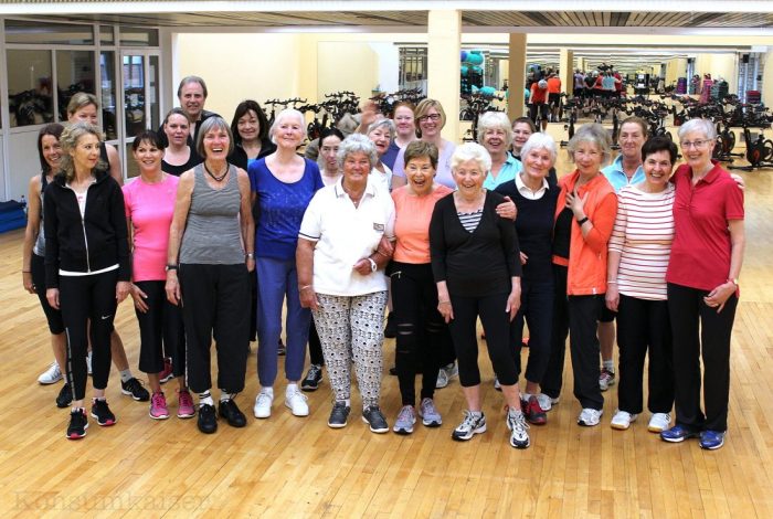 Warum ist das so? Nun, dieser Kurs ist ein (wenn nicht sogar DAS) leuchtende Beispiel für generationsübergreifende sportliche Aktivitäten. Wer kennt nicht die abschätzigen Bemerkungen über diese „typischen Hausfrauenkurse“, oder das Vorurteil, dass Seniorenfitness gleichbedeutend mit Sitzen auf einem großen Ball sei.