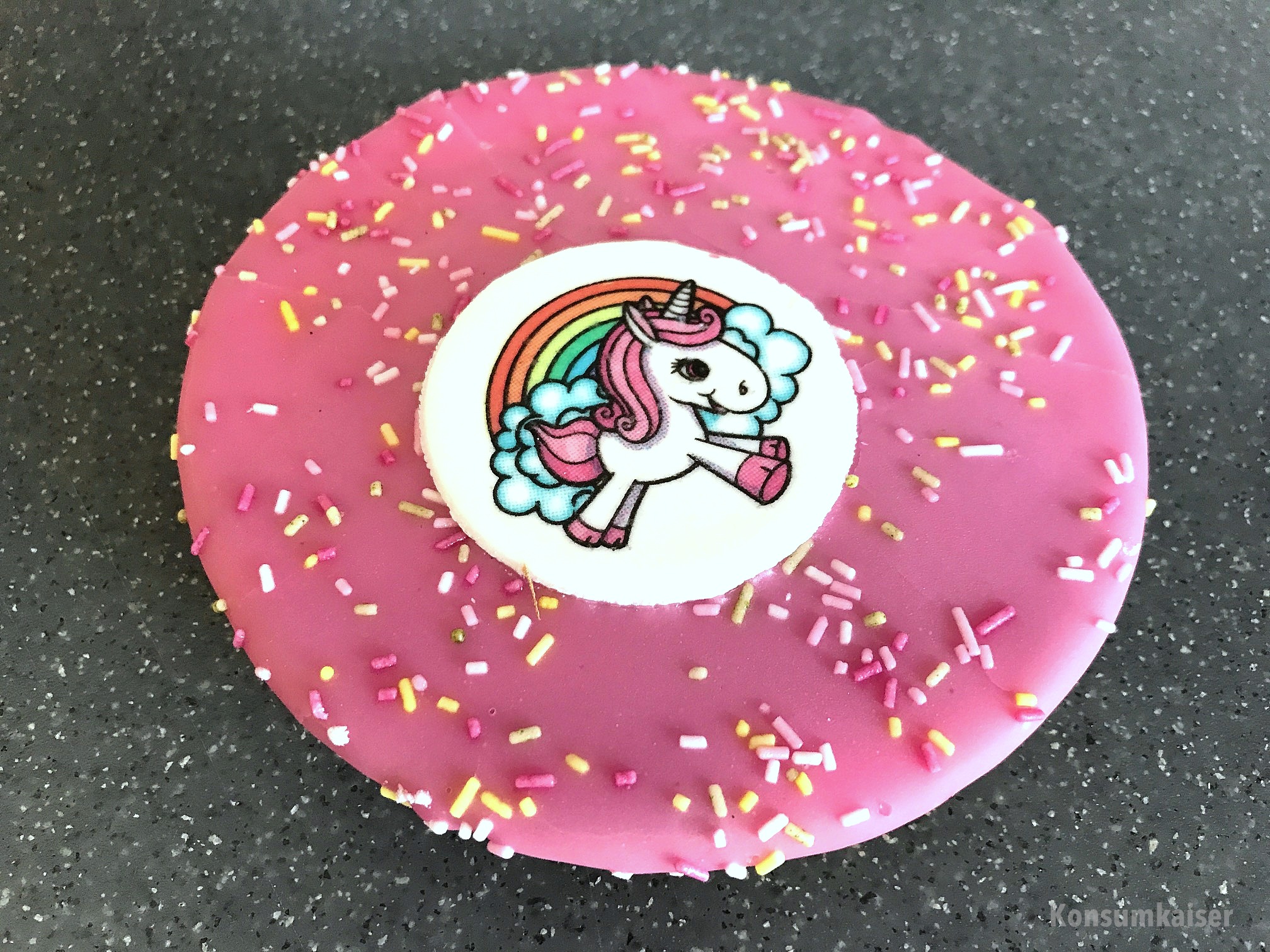 Und jetzt stelle ich mir Dich vor wie Du in der Fußgängezone einen rosa Amerikaner mit Einhorn isst…