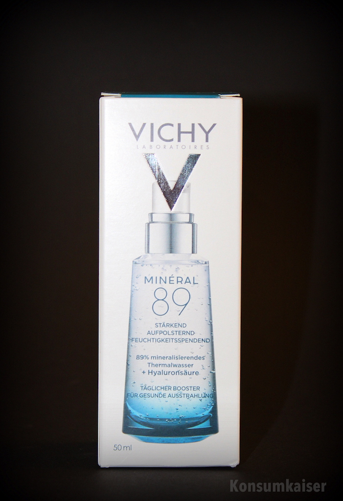 „Die hochkonzentrierte Kraft von 89% Thermalwasser in Verbindung mit natürlichem Hyaluron macht Minéral 89 zu einem einzigartigen Frische-Boost für die Haut. Minéral 89 stärkt die Widerstandsfähigkeit der Haut und schenkt ihr jeden Tag ein gesundes, strahlendes Aussehen.“ (Vichy PR)