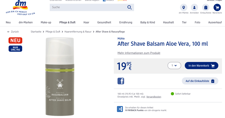 Dieser Rasurbalsam ist neu, die Inhaltsstoffe aber alt und berüchtigt. Alkohol, Parfüm, ätherische Duftstoffe und auch noch Menthol machen das Produkt keineswegs tauglich zur Beruhigung gereizter Haut nach der Rasur. Ganz im Gegenteil!
