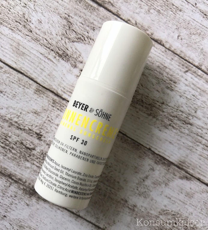 Da sitzt man so nichtsahnend vorm Computer und bestellt schon die ersten Winterpullover, da kommt eine Werbemail hereingeflattert, die mir eine neue Sonnencreme vorstellen möchte. Und zwar die von Beyer&Söhne (das sind die mit der guten Körpercreme). Hmm, ah ja? Eigentlich habe ich bereits genug Sonnencremes, sowas kauft man schließlich im Frühjahr. Aber was soll´s…schnell bestellt, schnell getestet…